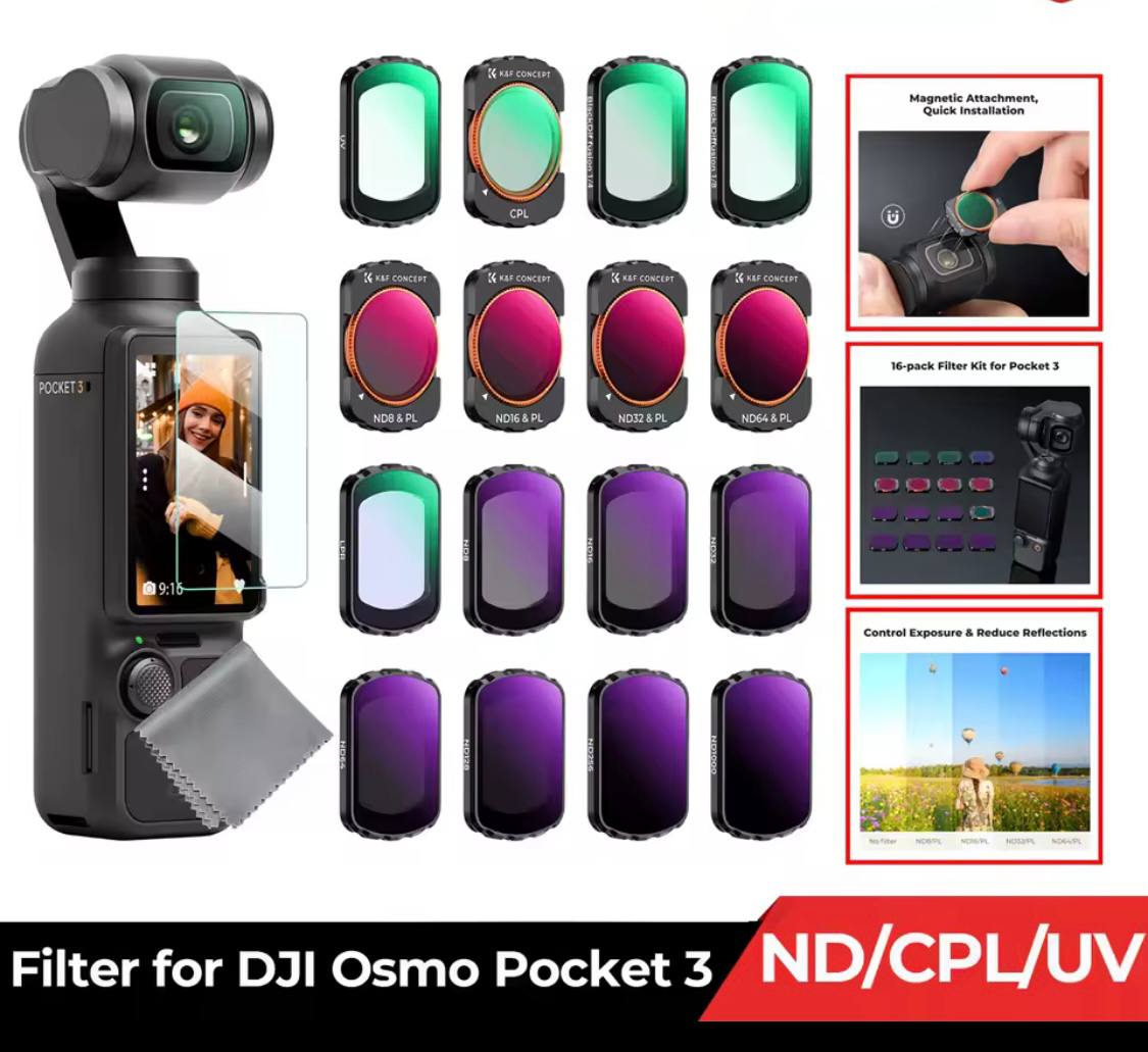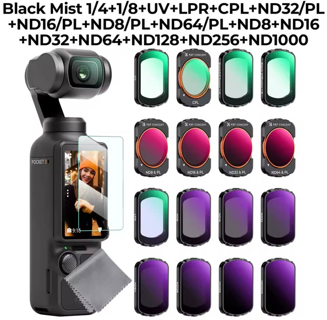 K& F Sport Effect Filter for DJI Osmo Pocket 3 UV CPL ND ND/PL Black Mist 1/2 1/4 1/8 LPR Star 1.2X Wide-Angle Filter Set